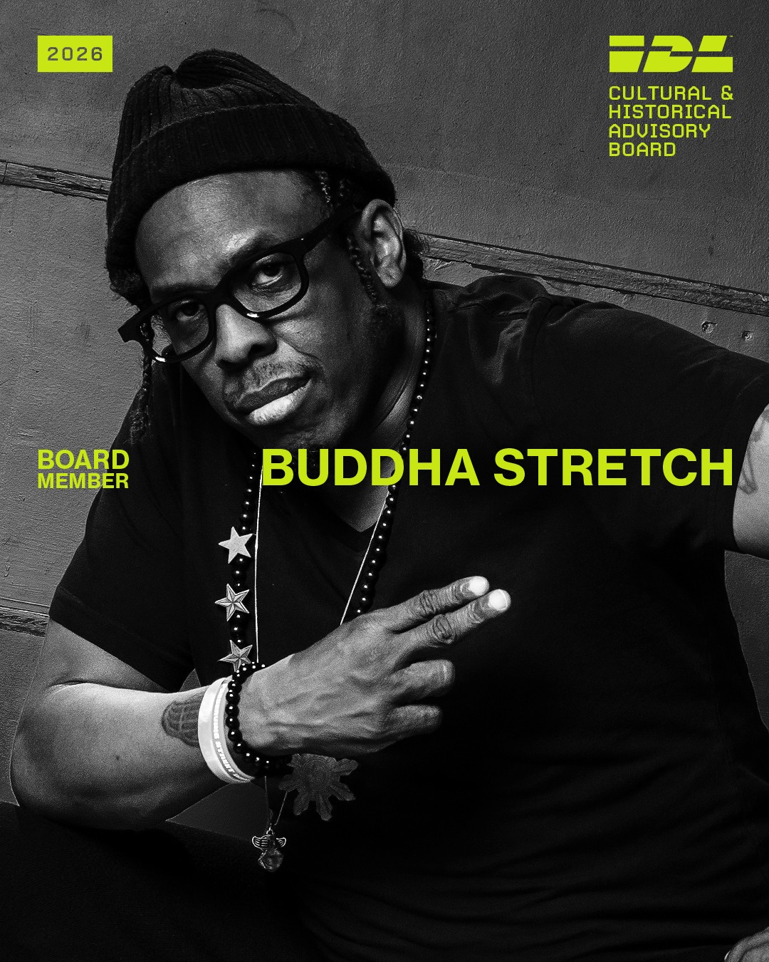 Buddha Stretch emerged from the New York City’s early Hip Hop scene in the 1980s. He co-founded the Mop Top Crew, followed by Elite Force Crew, both of which played a significant role in shaping Hip Hop dance as it moved from social and club spaces onto global stages. Alongside his decades-long career across music, film, and live performance, Buddha Stretch is also a globally respected educator who prioritizes sharing the roots, language, and historical context of Hip Hop dance with dancers of all levels.